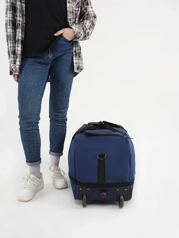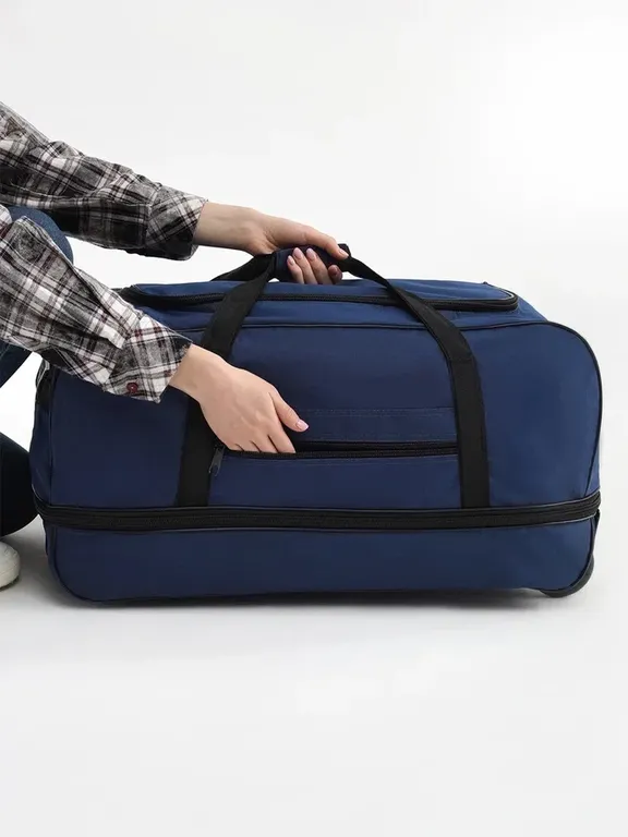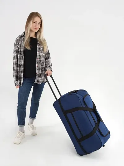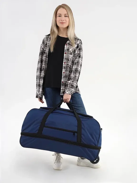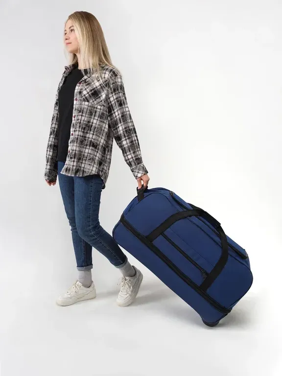 Дорожная сумка на колесах с выдвижной ручкой, синяя от Optimum - удобный аксессуар для любых поездок!