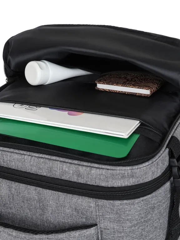 Вместительный передний карман и внутренний карман на сеточке для мелочей;