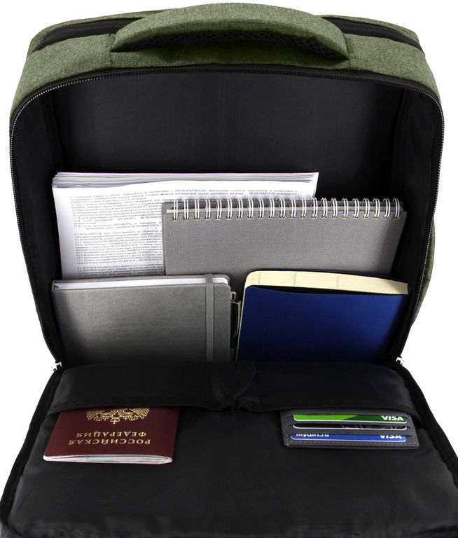• Три внешних кармана на молнии для хранения аксессуаров, зарядного устройства, визитных карт, авторучек, смартфона, документов;
