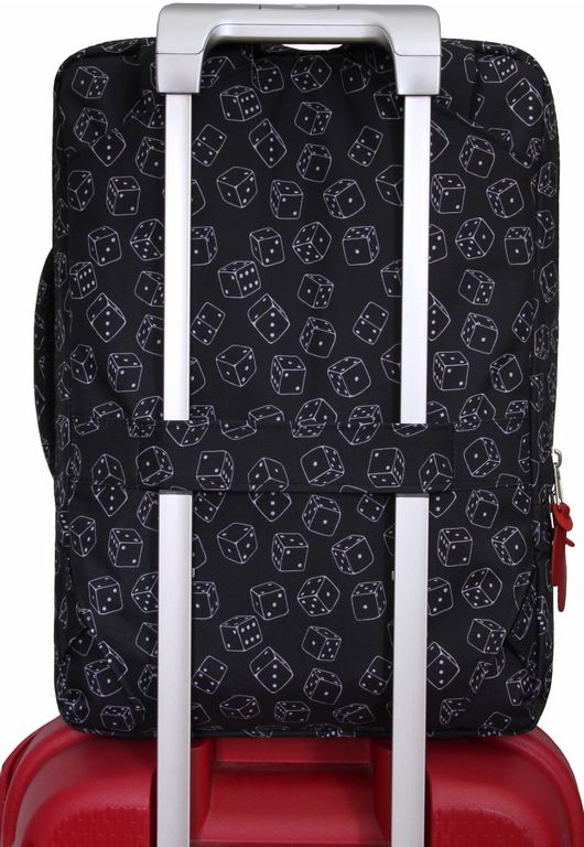• На задней стенке имеется ремень крепления к багажной сумке;