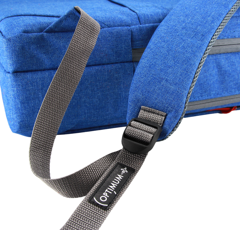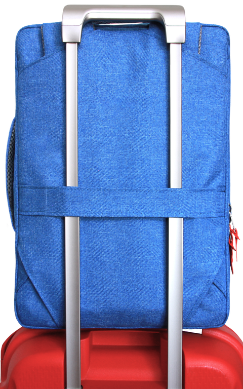 • На задней стенке имеется ремень крепления к багажной сумке;