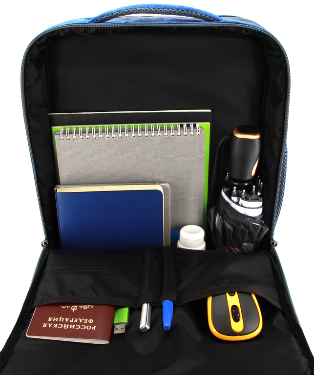 • Три внешних кармана на молнии для хранения аксессуаров, зарядного устройства, визитных карт, авторучек, смартфона, документов;