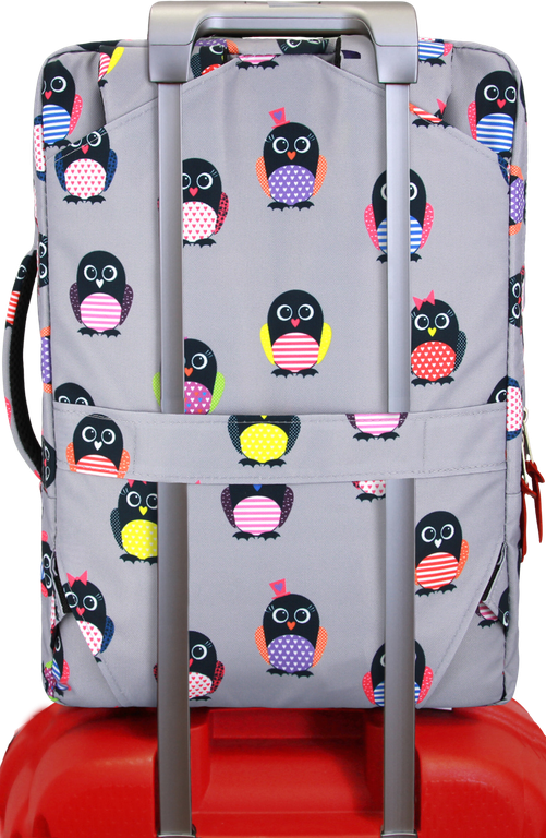 • На задней стенке имеется ремень крепления к багажной сумке;