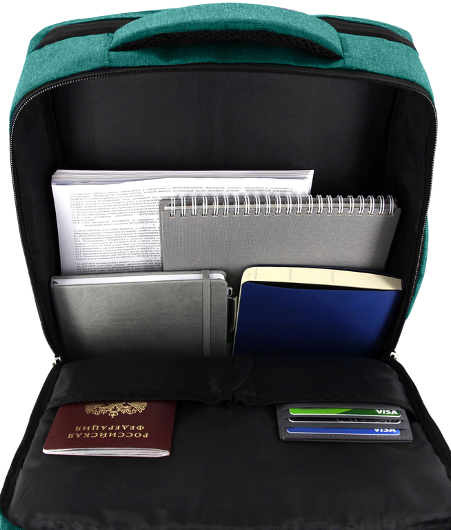 • Три внешних кармана на молнии для хранения аксессуаров, зарядного устройства, визитных карт, авторучек, смартфона, документов;