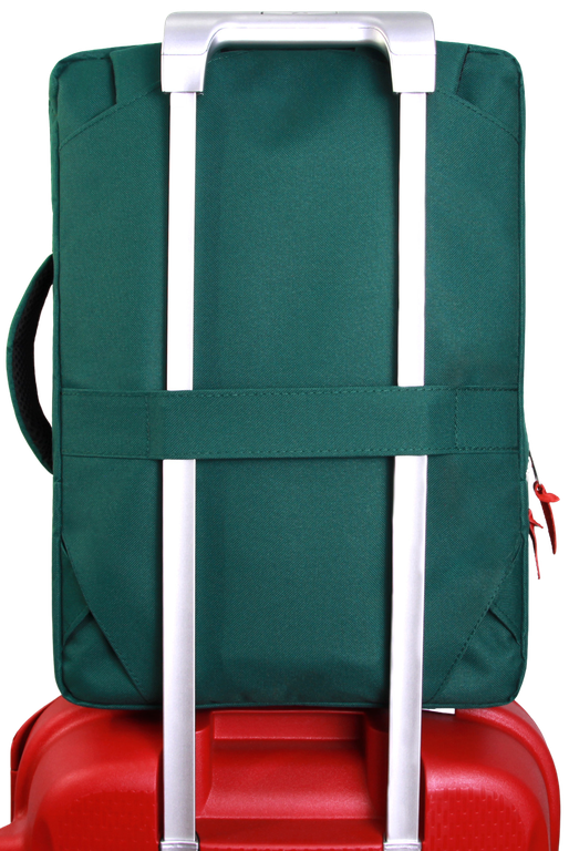 • На задней стенке имеется ремень крепления к багажной сумке;